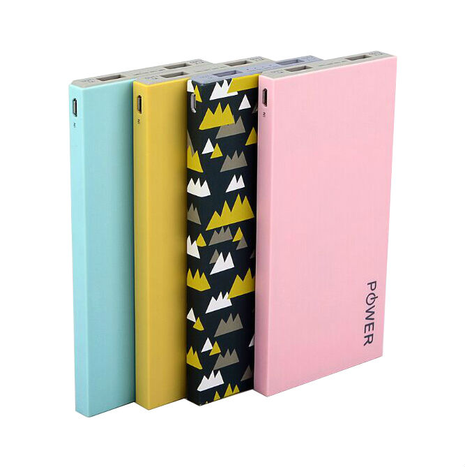 This powerbank comes in an ultra-thin rectangular design and offers a capacity of 10000mah. It can be printed with colorful patterns on the exterior and has four indicator lights to show the power status. Equipped with two USB outputs ports, this powerbank can charge multiple devices at the same time.