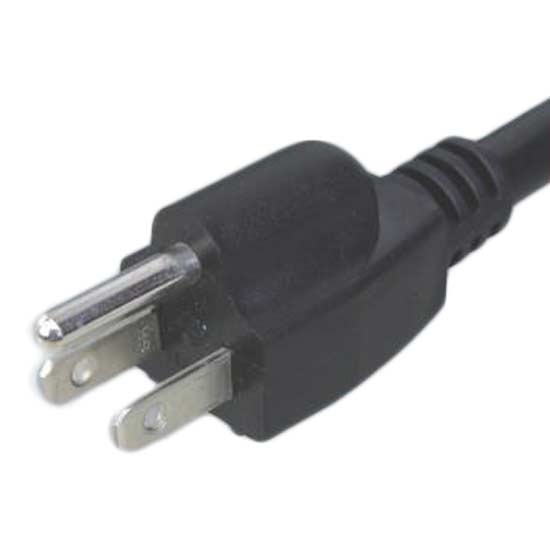 This power cord has a standard type-B plug, with two flat parallel blades and a round grounding prong. It is designed for plugging into standard Canadian outlets. The power cord is made of weather- and corrosion-resistant material for enhanced durability.