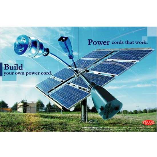 Pictured is a series of power cords specially designed for the solar power system. These high-performance power cords are designed for use under all weather conditions. They meet the 2Pfg1169/ 08 2007 and UTE C 32-502 standards and are UV-, ozone-, flame- and weather-resistant.