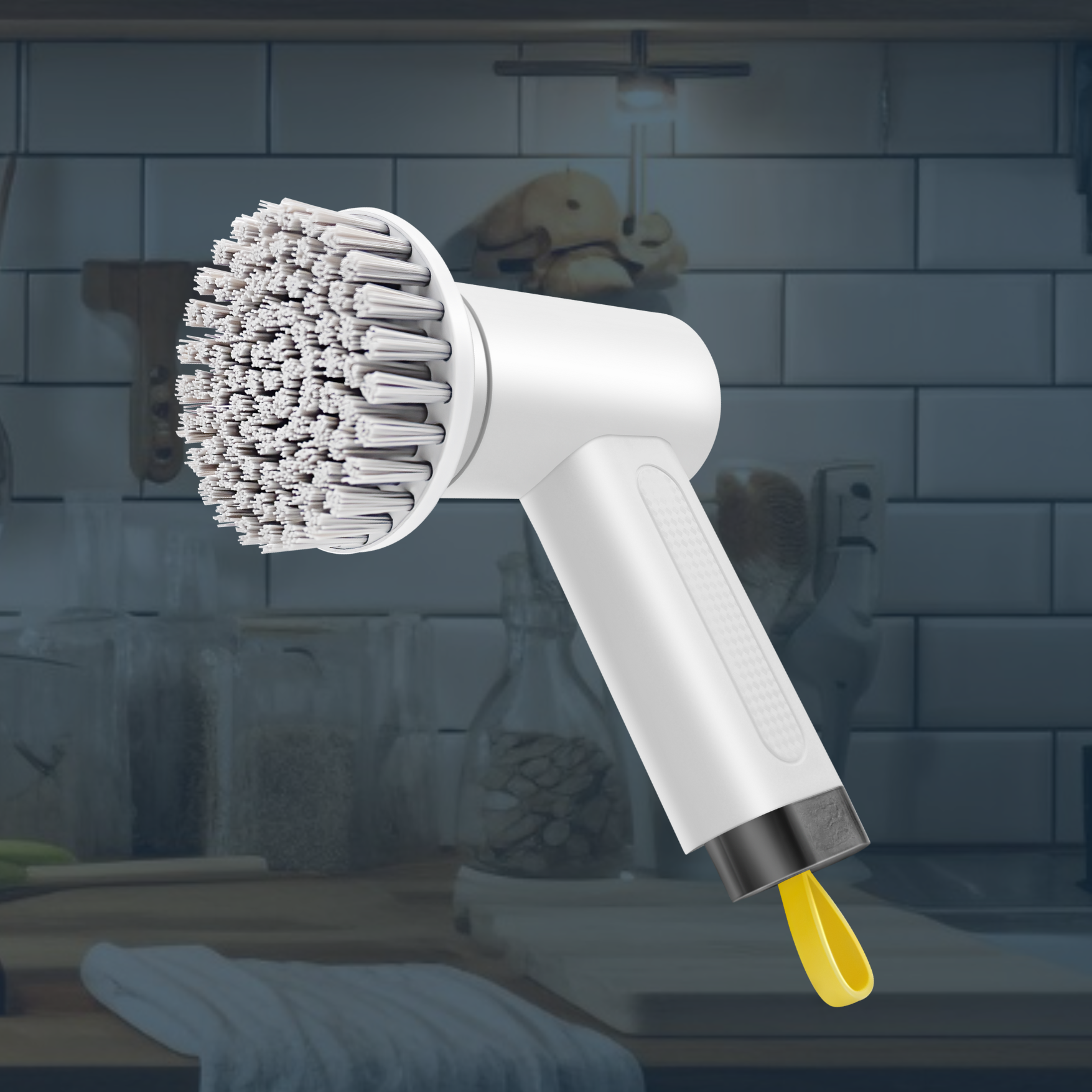 • Versatile Attachments: Includes interchangeable attachments like flat brush, scouring pad, and polishing brush for various surfaces.