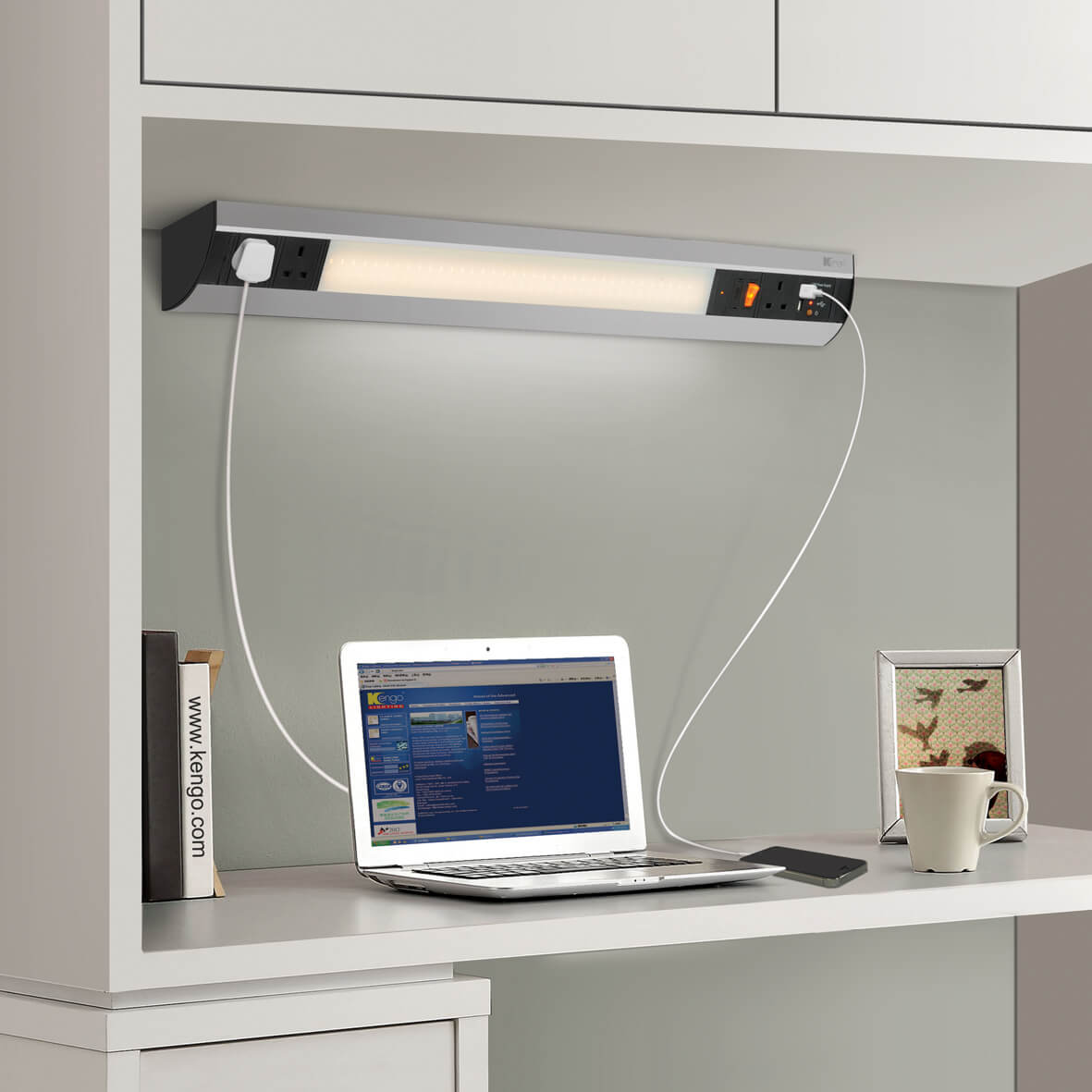 Designed with sockets and lighting modules for undercabinet and undershelf mounting