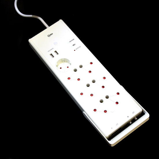 Pictured is a power strip with over-voltage and surge protection. The overload, resettable circuit breaker protects against current overload at 16 amps. This multi plug makes a great addition for households.