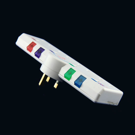 13A 250V BS5733 4 GANG ADAPTOR WITH INDIVIDUAL SWITCH; WHITE OR COLORED SWITCHES AVAILABLE; WITH SURGE PROTECTOR