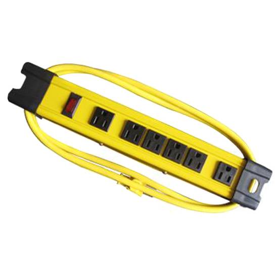 This is a 6-outlet power strip. The body and cord of the power strip is colored in the bright yellow color for easy spotting. The power strip is of the NEMA 5-15 standard suitable for using in the United States.
