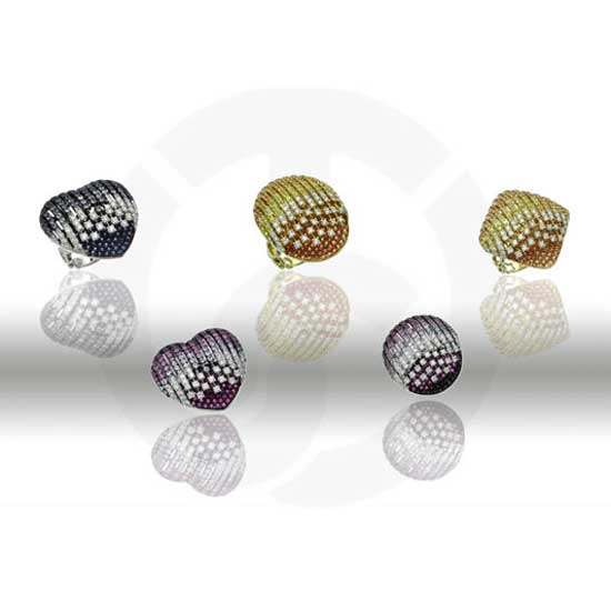 Displayed are pendants and rings designed in heart or dome shapes. This dynamic collection makes use of precious color stones and diamonds to interpret the youthful and classy styles. Add splashes of color to your daily look with one of these dainty little rings or pendants.