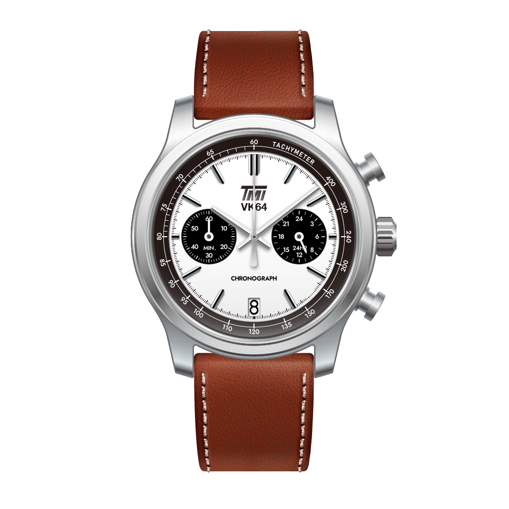 The VK Premium Chronograph series expertly fuses quartz precision with mechanical-style features like instant zero reset, tactile pushers, and a sweeping 1/5-second chronograph hand. Its signature three-pointed hammer—once exclusive to our high-end mechanical chronographs—flawlessly governs the instant zero reset function. With a bold calendar display and an accessible price, the VK series elevates any timepiece it powers with style, substance, and value.
