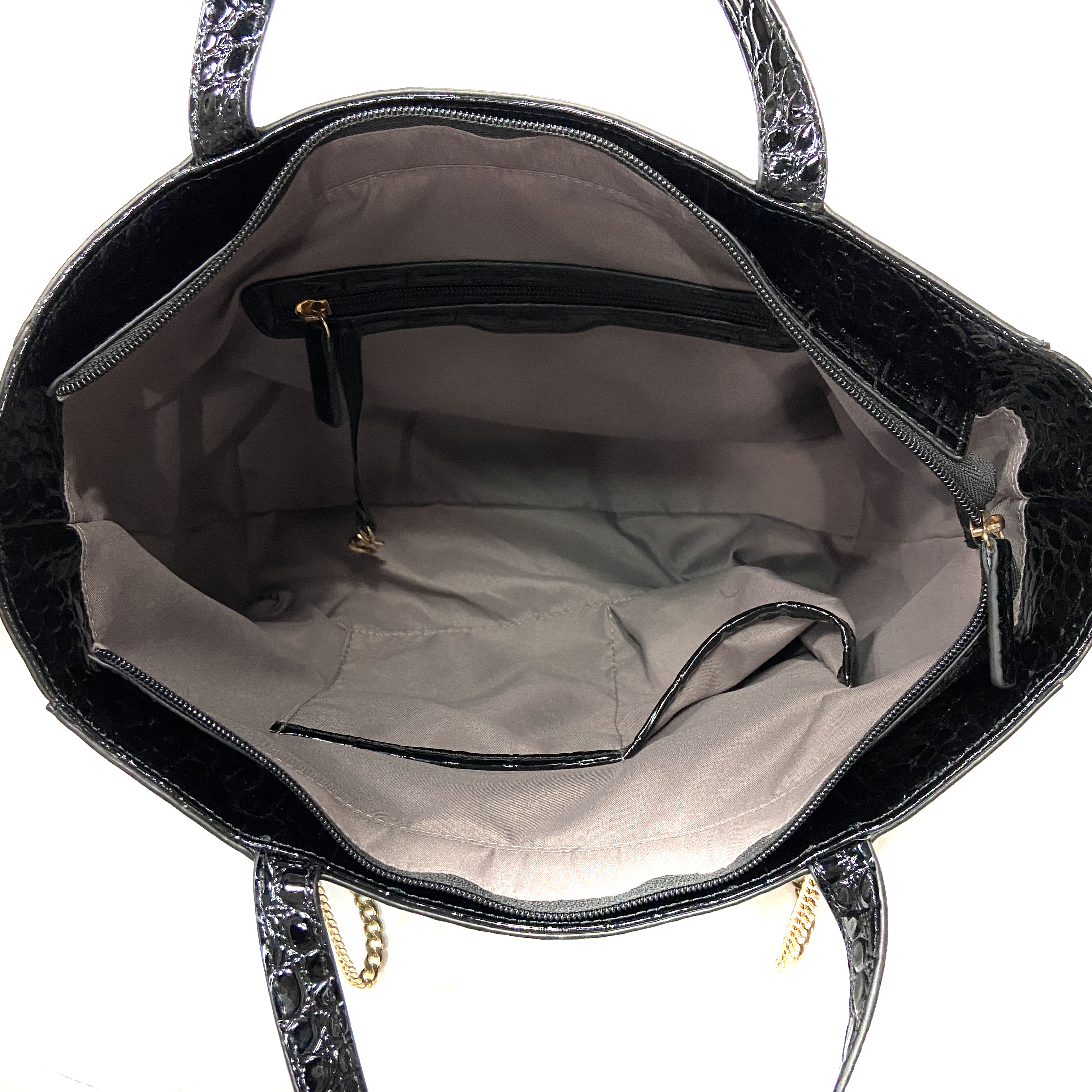 Premium Croco-embossed Imitation Leather Women handbag Tote bag Metal chain Shopping bag Zipper closure Black
