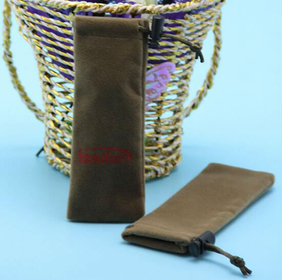 1.Material: 1C velvet material+ silk printing logo+drawstring