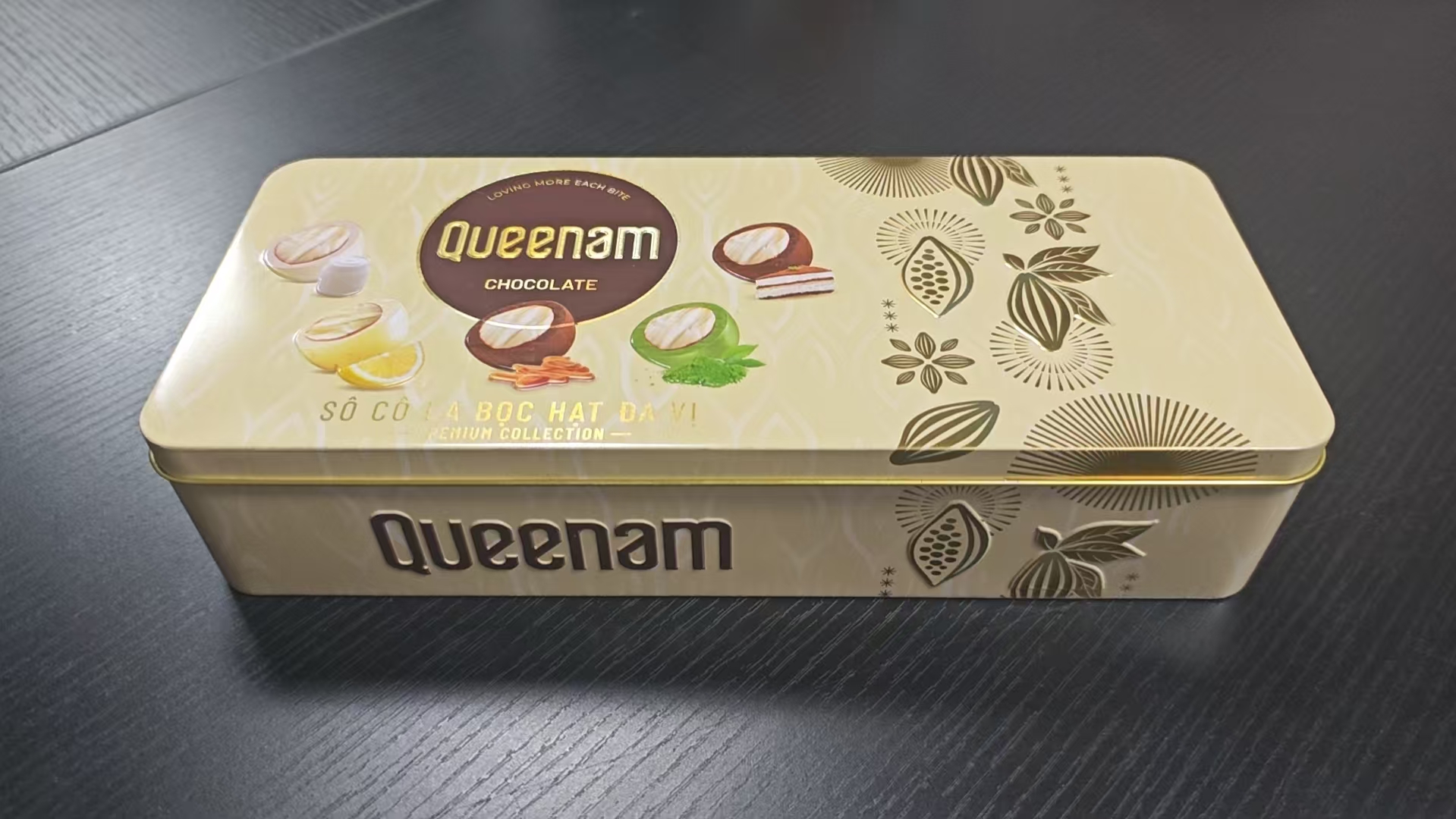 Elevate your gifting and indulgence experience with the Queenam Premium Assorted Chocolate Gold Tin Box, a masterfully crafted metal packaging solution designed to house the iconic Queenam multi-flavor chocolate collection. More than just a container, this exquisite tin box is a celebration of luxury, flavor, and Vietnamese confectionery artistry, transforming every moment of chocolate enjoyment into a premium, unforgettable ritual. Meticulously engineered from high-quality food-grade tinplate, this rectangular tin box combines uncompromising durability, stunning visual appeal, and functional excellence, making it the ultimate vessel for Queenam’s beloved assorted nut-wrapped chocolates, and a standout piece for retail, gifting, and personal indulgence alike.