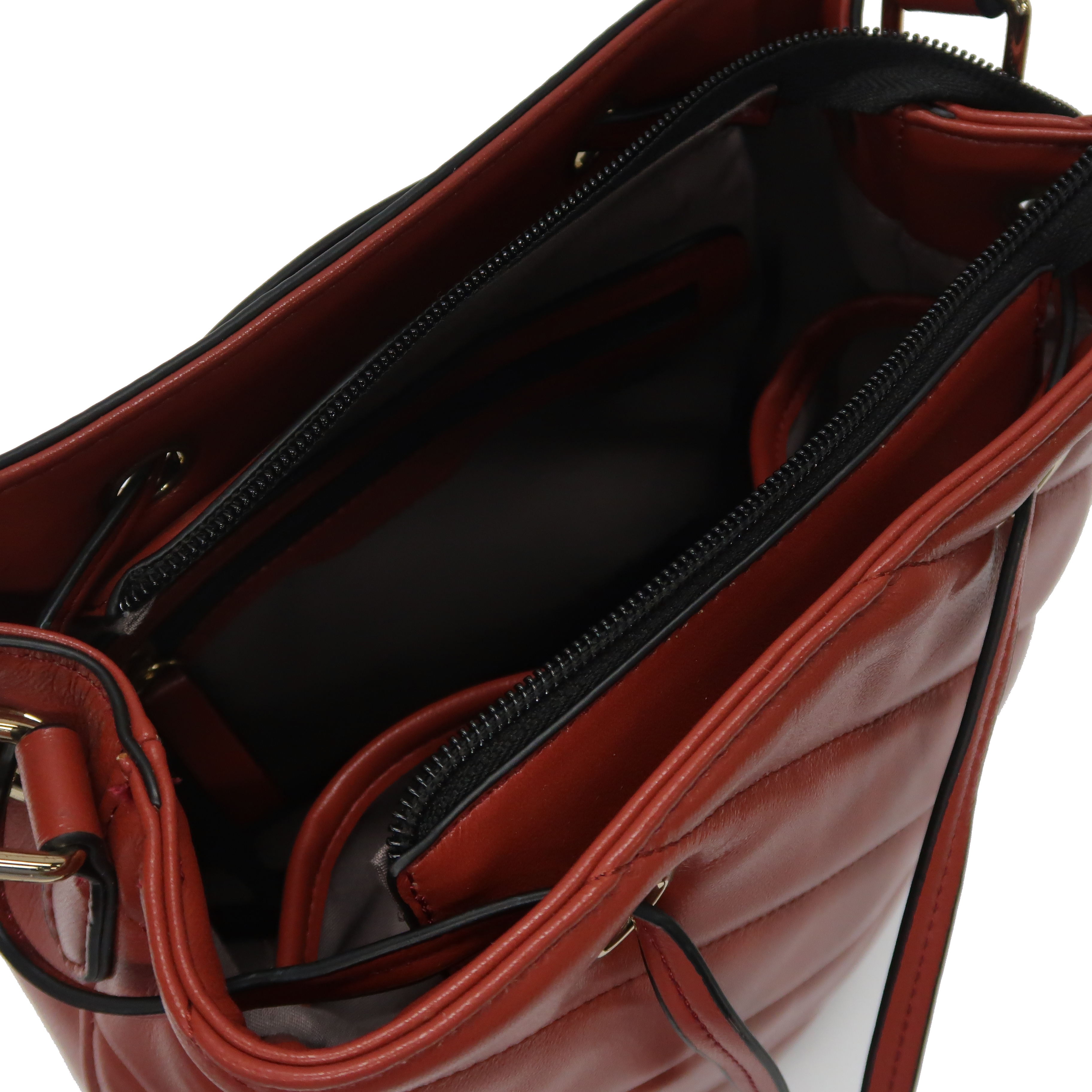 • Adjustable shoulder strap, single handle, 1 exterior zip pocket, 1 interior zip pocket and 2 interior slip pockets
