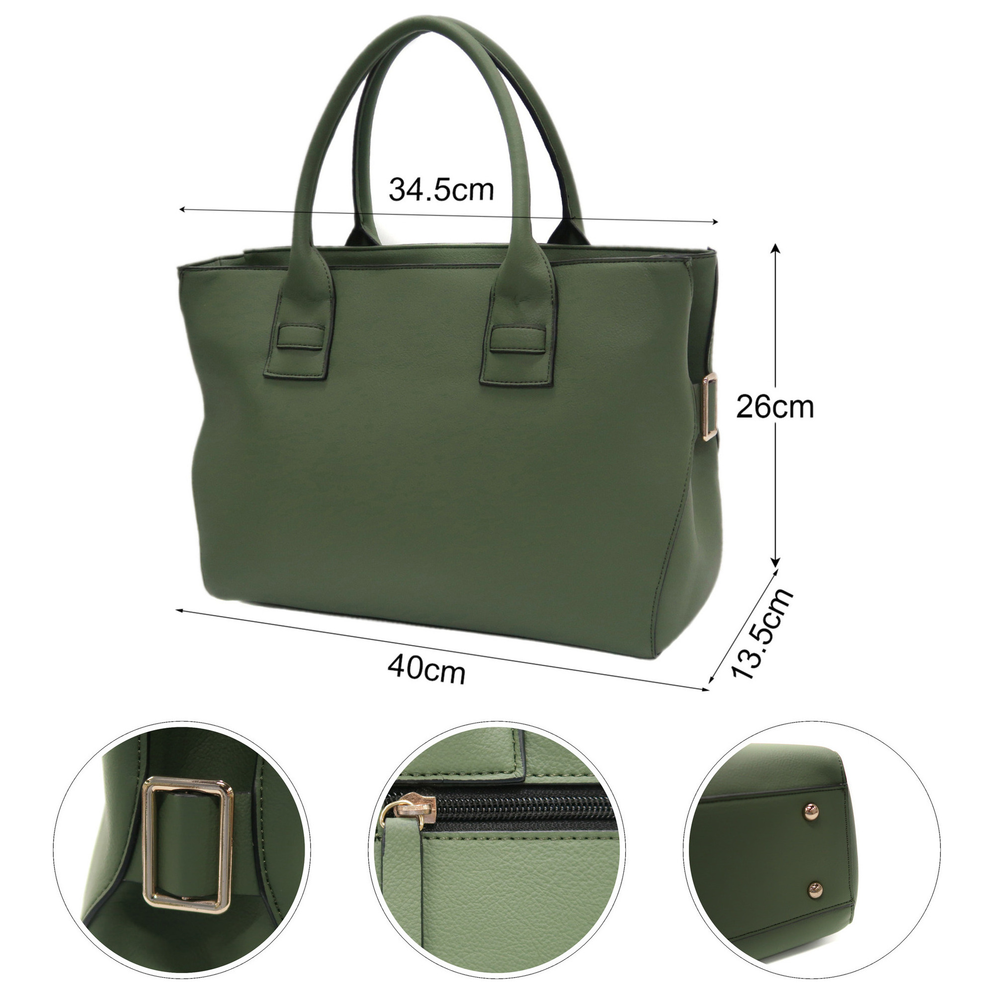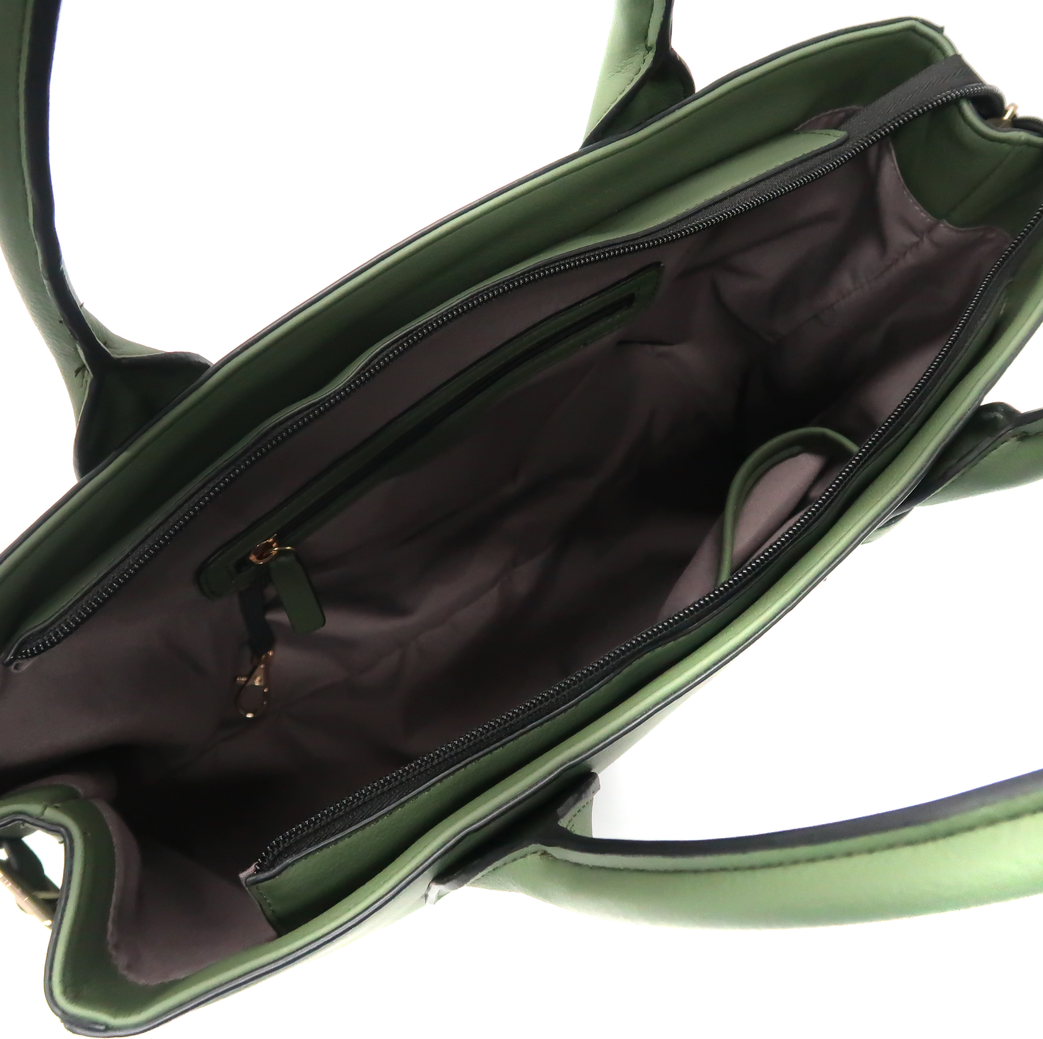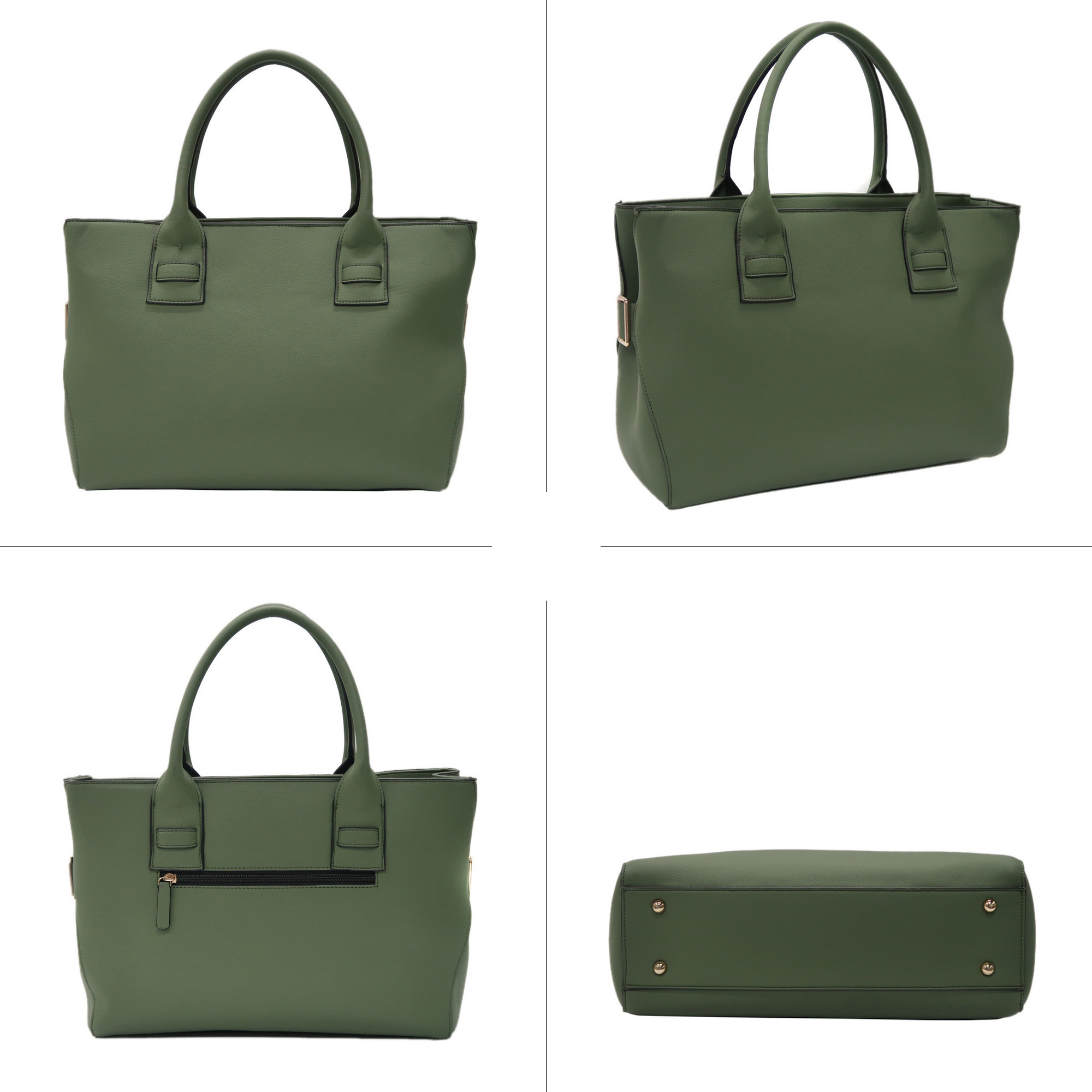 Premium Imitation leather Women Shopping Bag Top handle Bag Handbag Zipper closure Olive