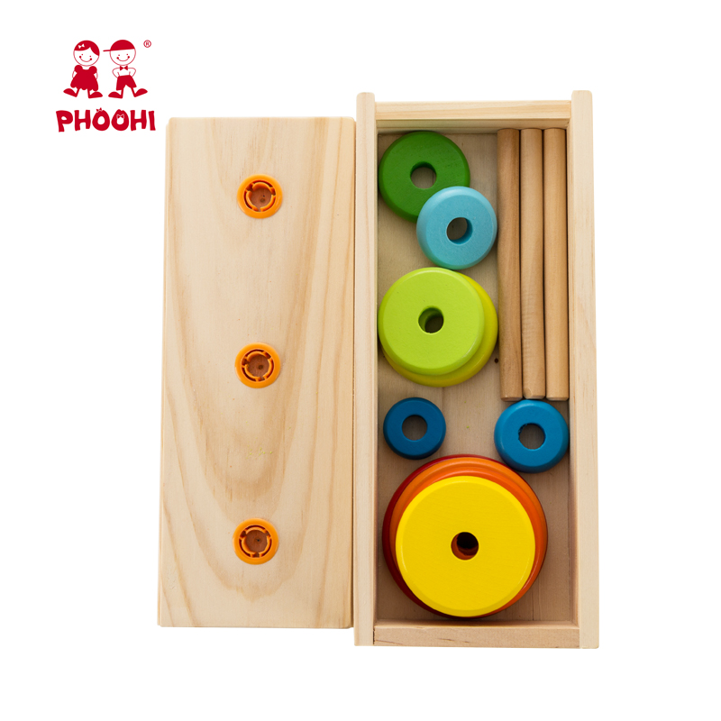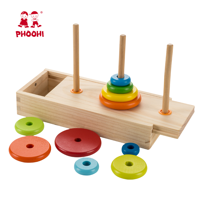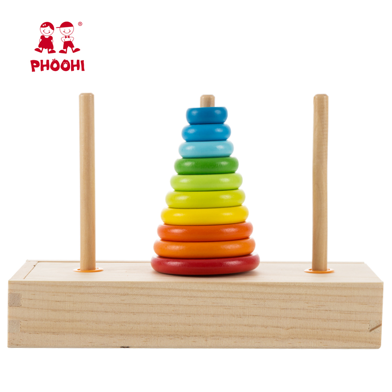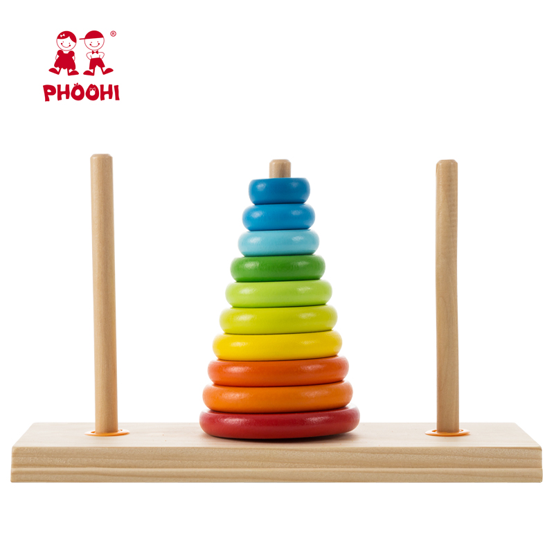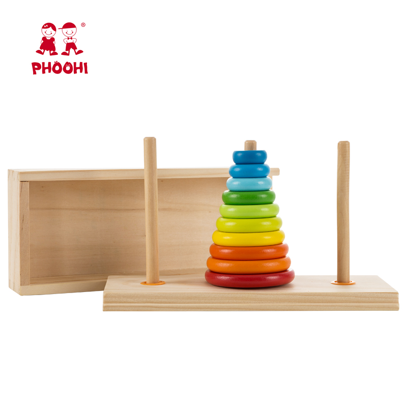 Preschool Educational Kids Rainbow Stacking 10 Rings Toy Wooden Hanoi Tower for Baby