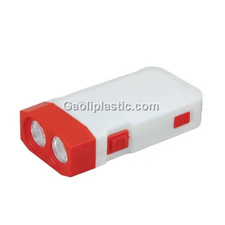 This is a press dynamo flashlight designed in white and red. It comes in a compact size and promises gratifying illumination. The durable construction makes it an affordable choice for emergency use.