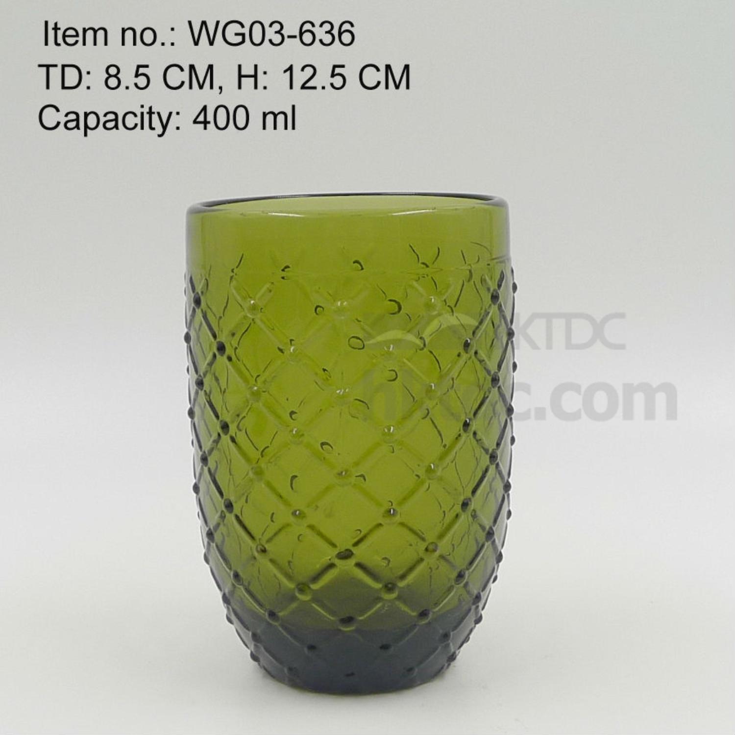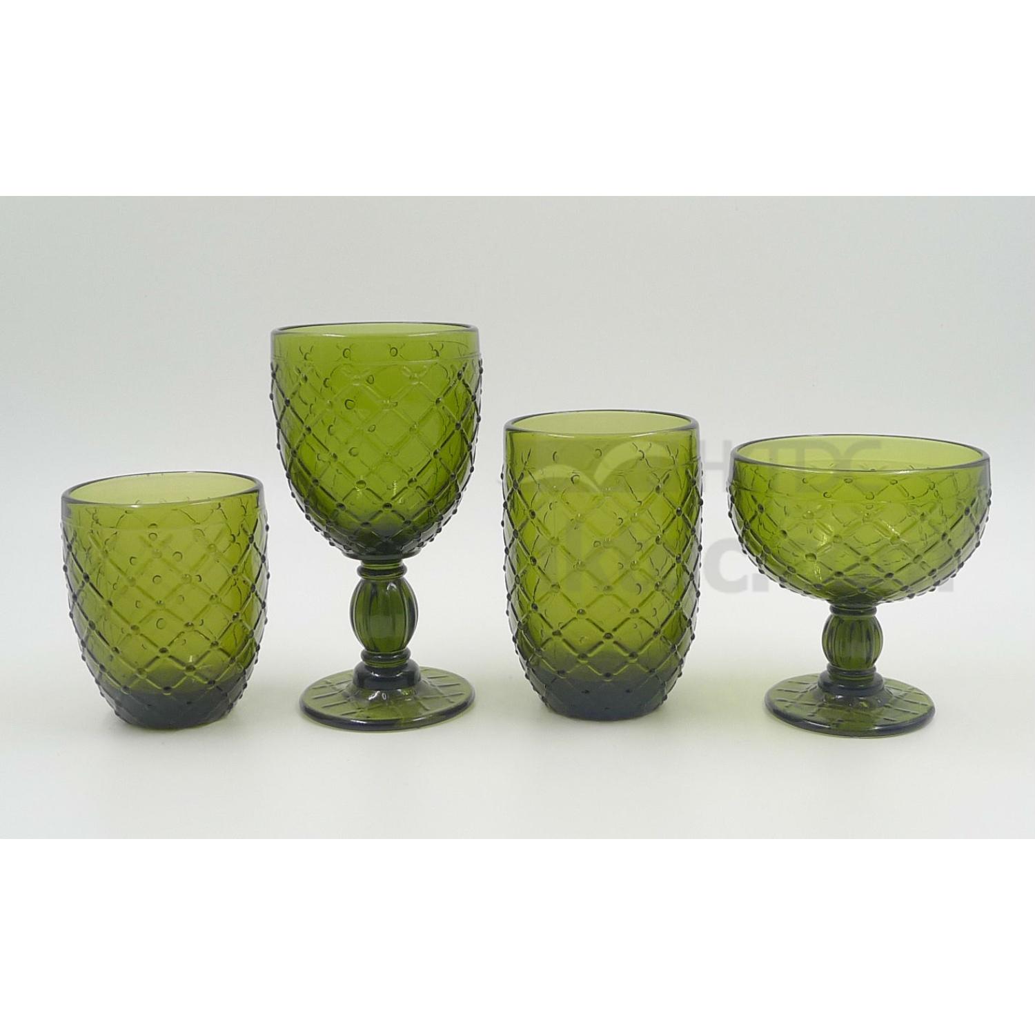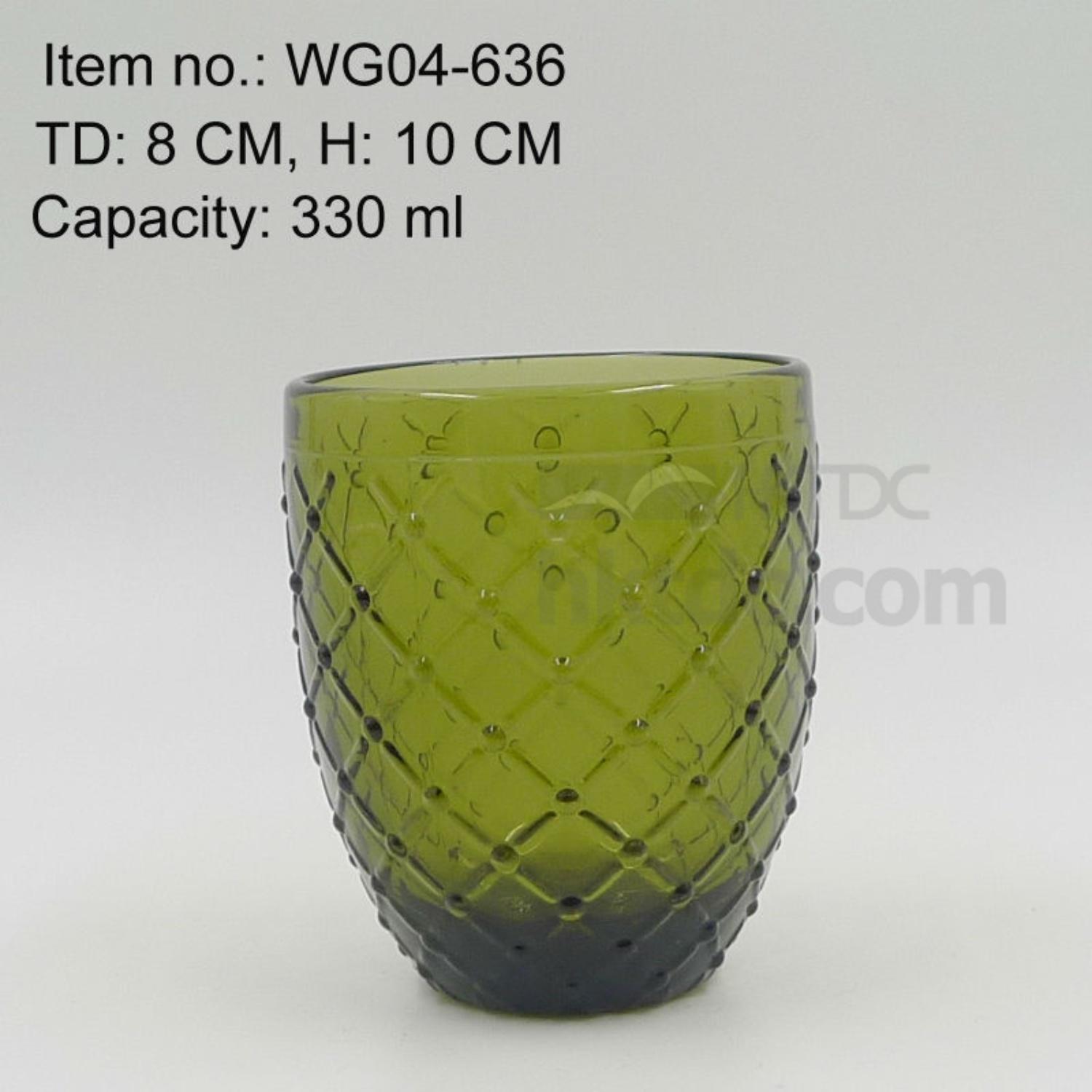 Drinking Glass set with Knit emboss, in Olive color, Made by pressed glass, available for many solid colors, durable items, in lower price, Totally 4 shapes we have in this Group: