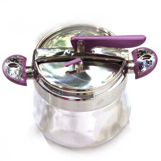 As shown is a pressure cooker designed for efficient cooking in kitchens. The vacuum structure facilitates the convention of high-heat steam. The stainless steel structure comes with a shiny polished surface for enhanced durability.