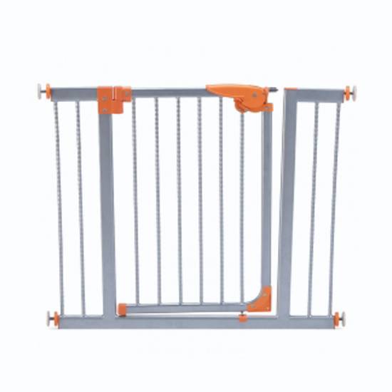 The pressure-mounted metal safety gate features a robust construction. It is easy to install without any hardware or tools required. Ensure your baby's safety at home with this metal safety gate.