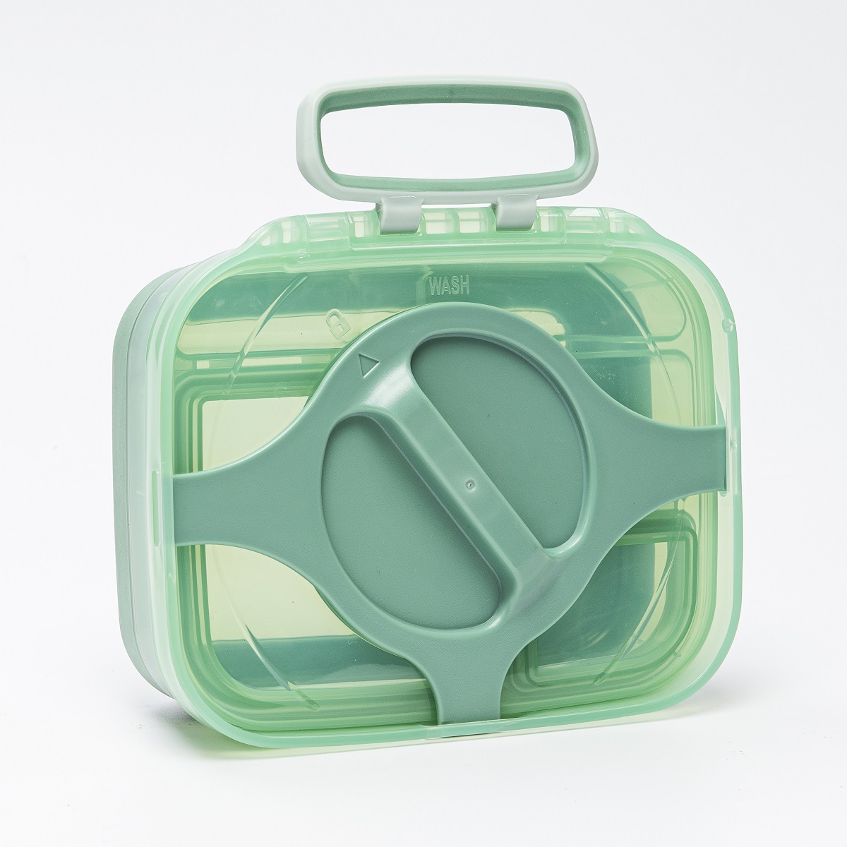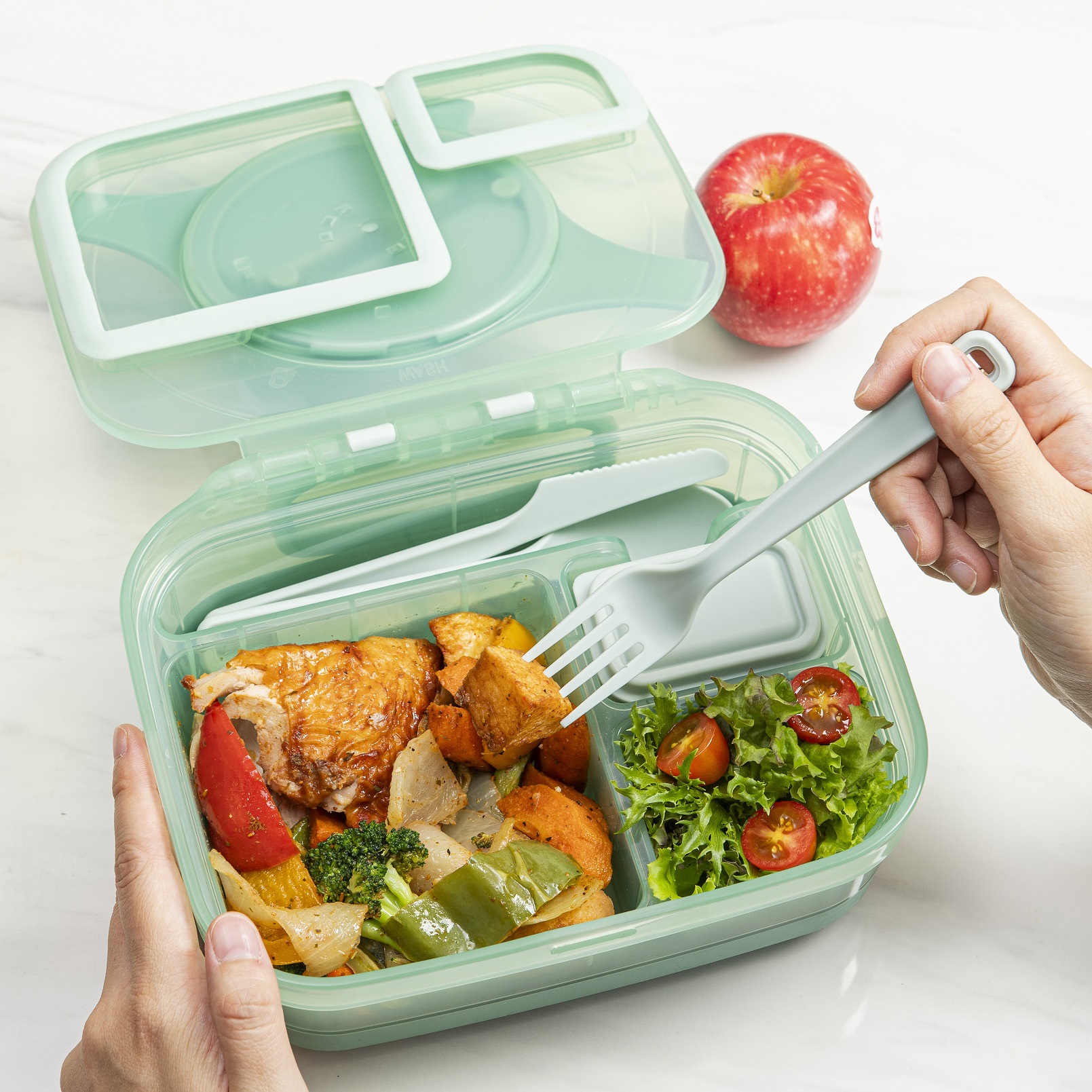 • Includes a sauce container and a set of on-the-go utensils (knife, fork, and spoon) for added functionality.