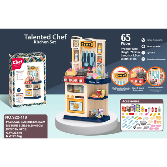 Pretend Play Kids Kitchen Set Cooking Tableware Toy With Light Sound Water Running Spray Function