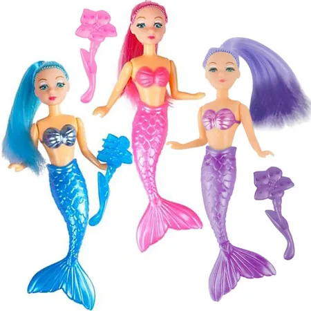 Princess Party favors Best Birthday Gift Girls Play Set Toys Set Mermaid Toy with 3 Figurines & 3 Brushes