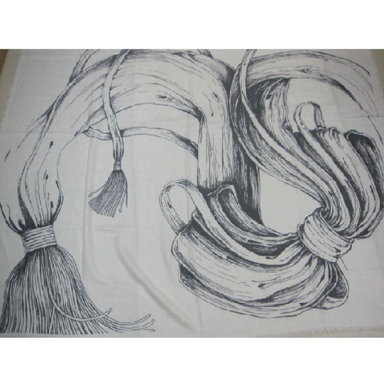 This luxurious printed scarf comes with a special, abstract pattern of ropes and tassels. Simplistic and stylish, this scarf complements any of your look in fall and winter nicely. The top-quality materials keep you warm and comfortable during chilly days.