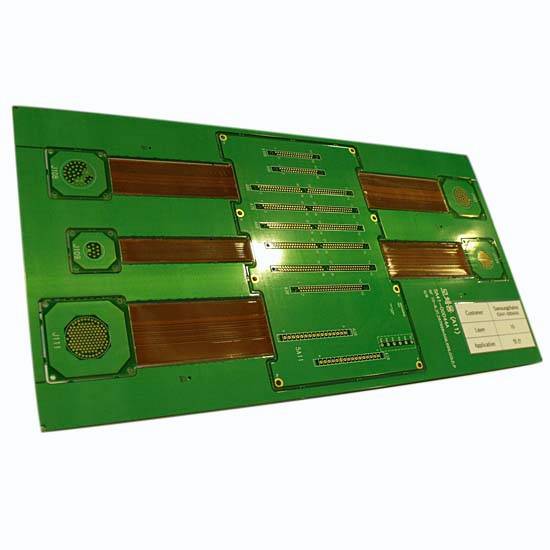 This printed circuit board is well constructed with 10 layers. The immersion-gold plating over the solder mask layer gives it a professional look. It is specifically designed for Samsung Thales applications.