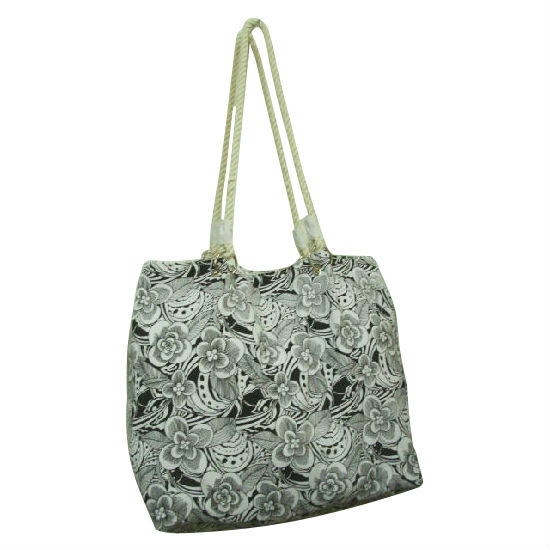 • Printed cotton/polyester beach tote with cotton rope handle.