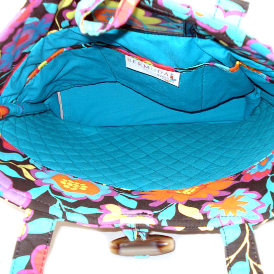 This is a tote bag made of high-quality cotton with excellent craftsmanship. It beautiful flower patterns add a touch of charm and elegance to this design. This bag features a big spacious compartment with a small pocket inside.