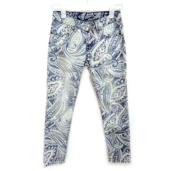 This pair of printed jeans comes with a stylish and fashionable design. The jeans are designed in multiple colors for an attractive look. This pair of beautiful jeans features two side pockets, belt loops and a one-button closure.