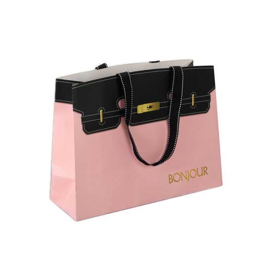 This is a printed paper bag that is designed with two top handles for easy and convenient carrying. It has a large main compartment to store different items easily. This simple yet beautiful paper bag is ideal for shopping use.