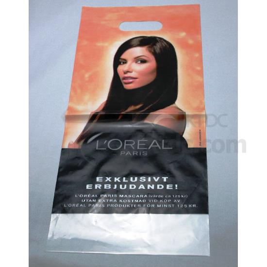 This printed bag is made of plastic for long-lasting durability and has cut-out handles for easy holding. It is printed with high quality image with brand logo and information. Traditional and economical, this plastic bag is excellent for retail shops to pack purchases products for customers. Made of plastic for long-lasting durability.