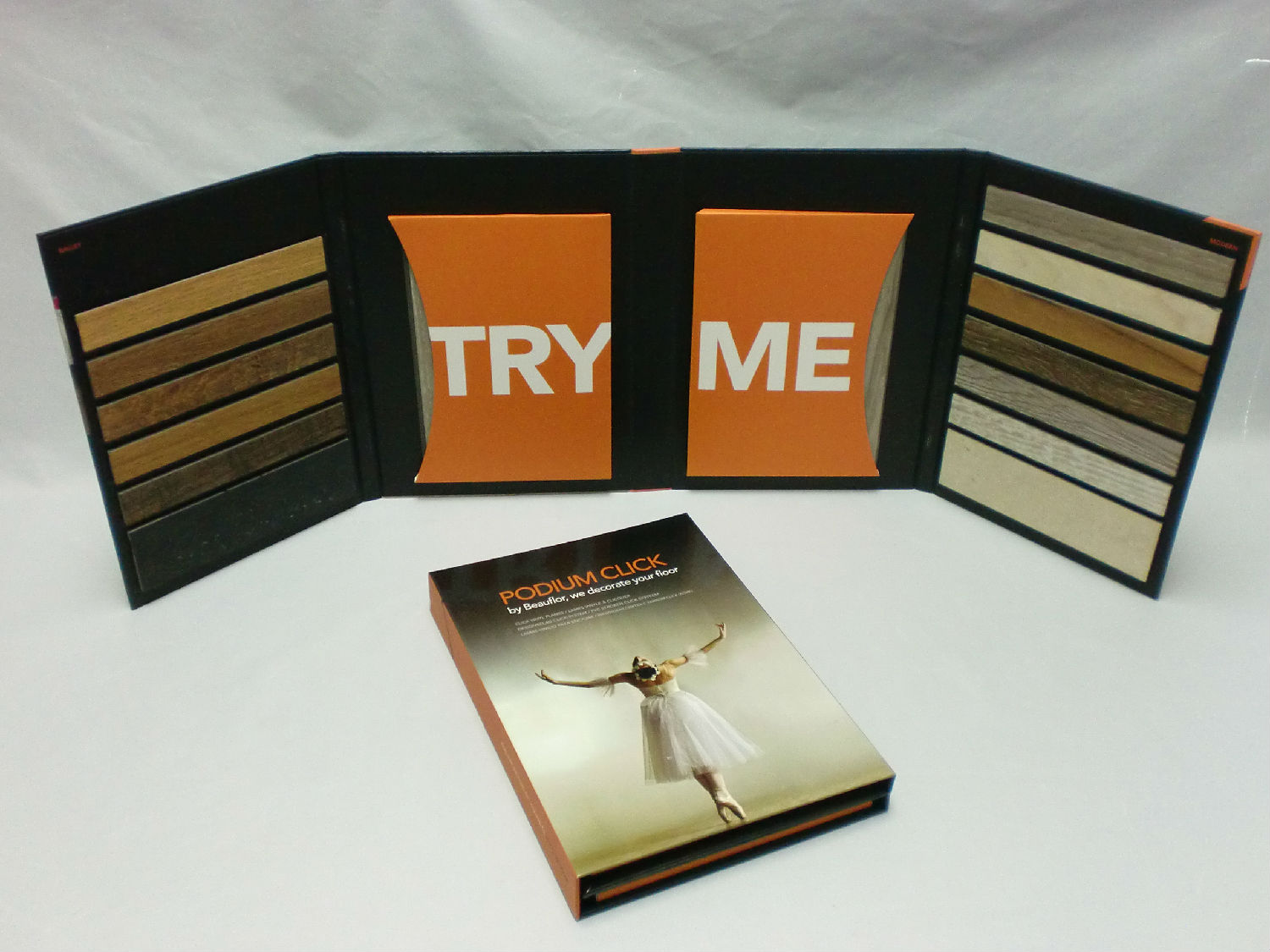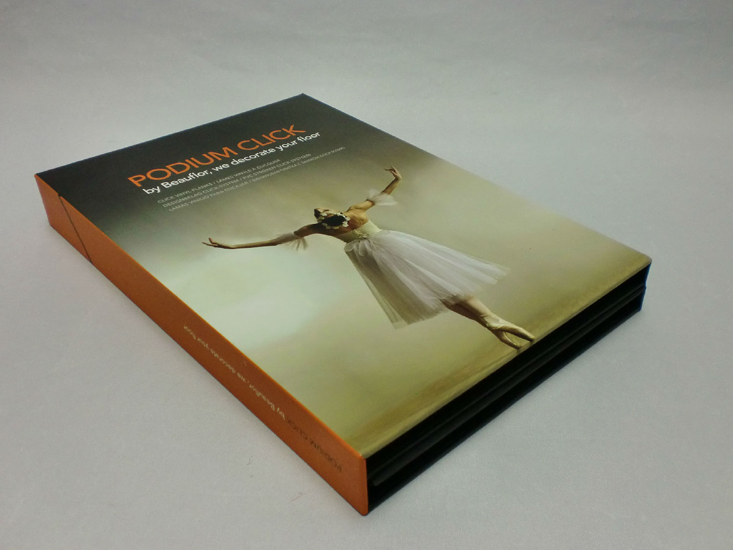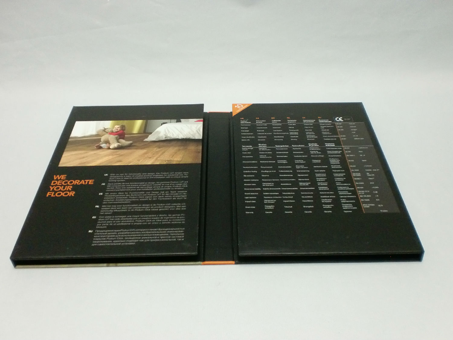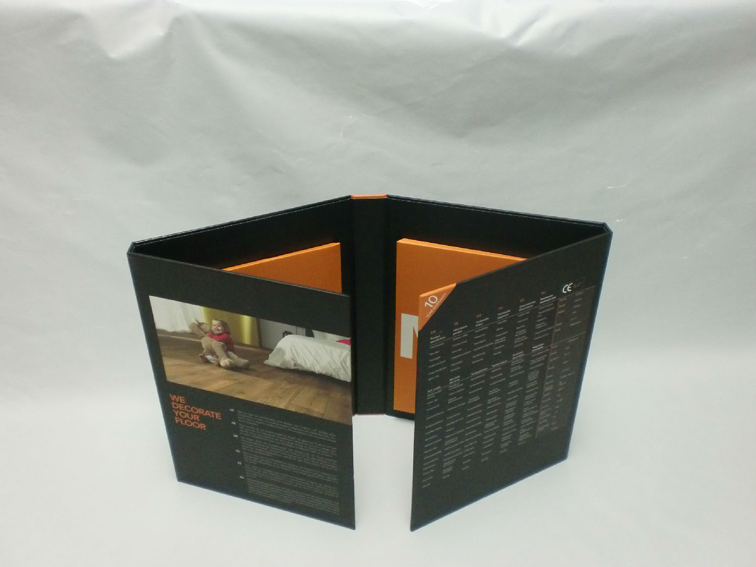 • Binding:Hardcover folder + accordion folded leaflet + glued with wood floor sample