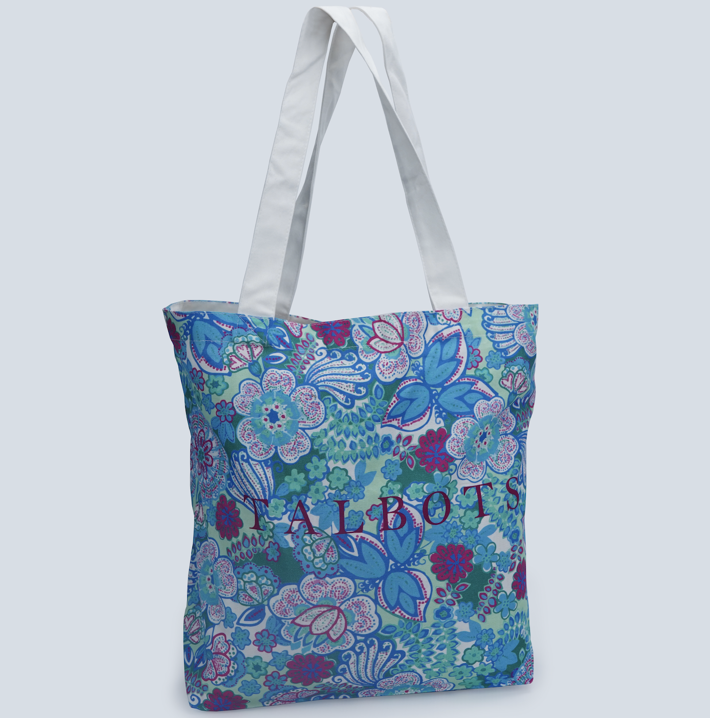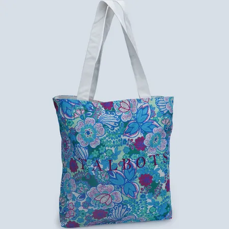 The products is made with 100% Cotton Fabric. The size of the bag is 38cm Width by 42cm Length with an handle of 65cm. The bag is digitally printed and with a contrast of white handle. The products is Oeko-Tex 100 and the company is Bsci certified.
