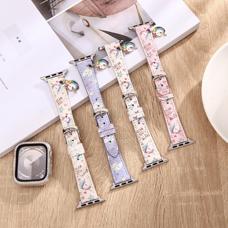 Printed leather watch strap applicable for classical watch and apple watch full series