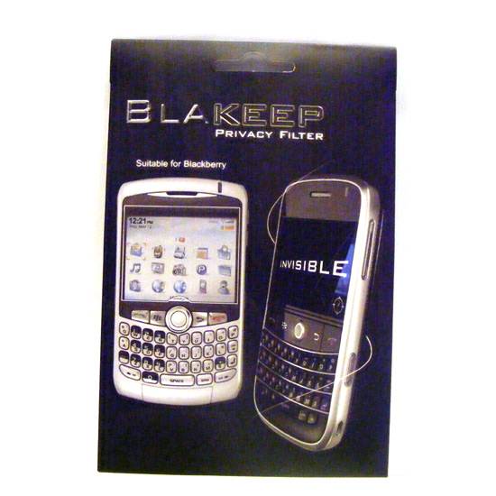 As shown is a privacy protection filter for cell phones such as Blackberry. Finishing is done with ultra hard coating of surface hardness to prevent the electronic devices from scratch. It can be use conveniently by cutting to a desired shape with scissors or cutter.