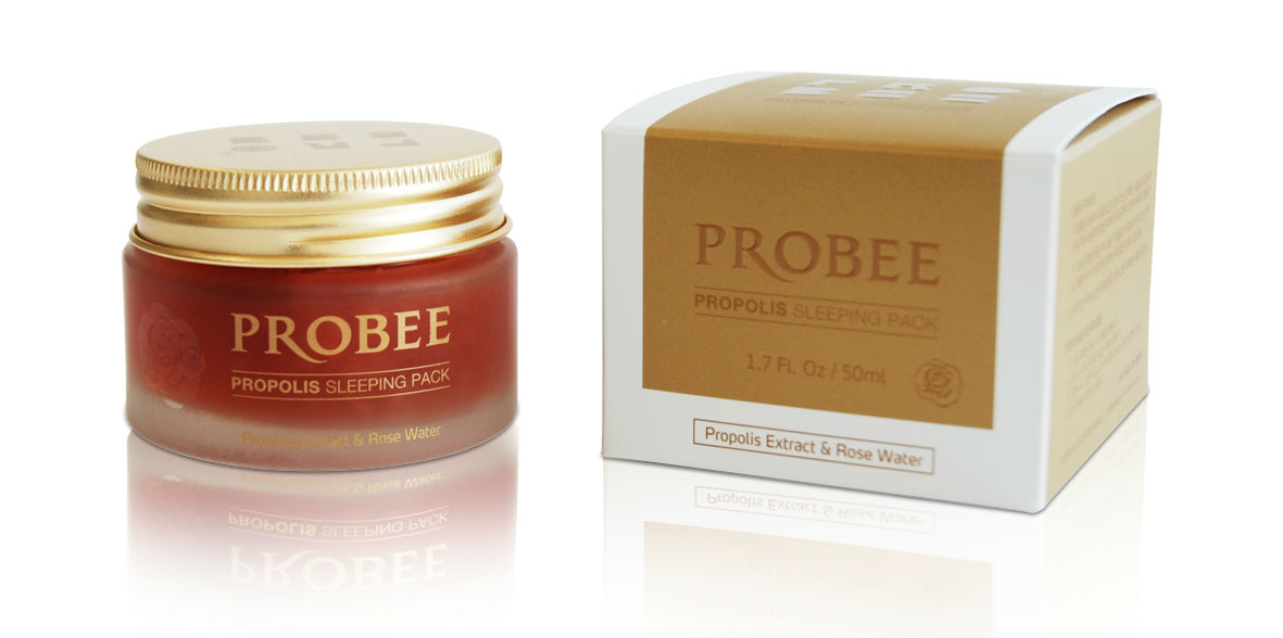 • Probee sleeping pack' contains the propolis extract and pure distilled Rose Water.