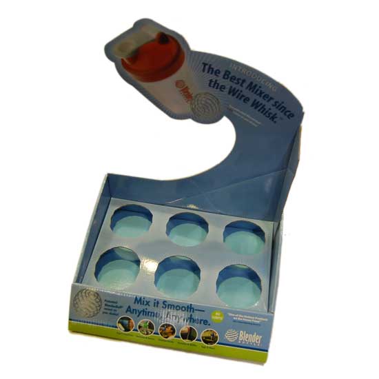 This product display box is designed with ring-shaped individual slots. It is made with an attractive sign that serves extra promotional purposes. This 6-piece display box is great for use at the point of purchase or other areas in the retail store.