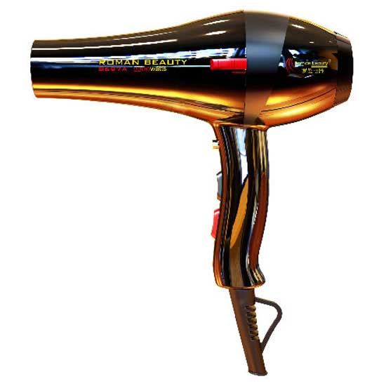 This stylish professional hair dryer features a black and golden housing in a glossy finish. It is fitted with an energy-efficient AC motor for quick drying. The reliable hair dryer boasts a long service life.