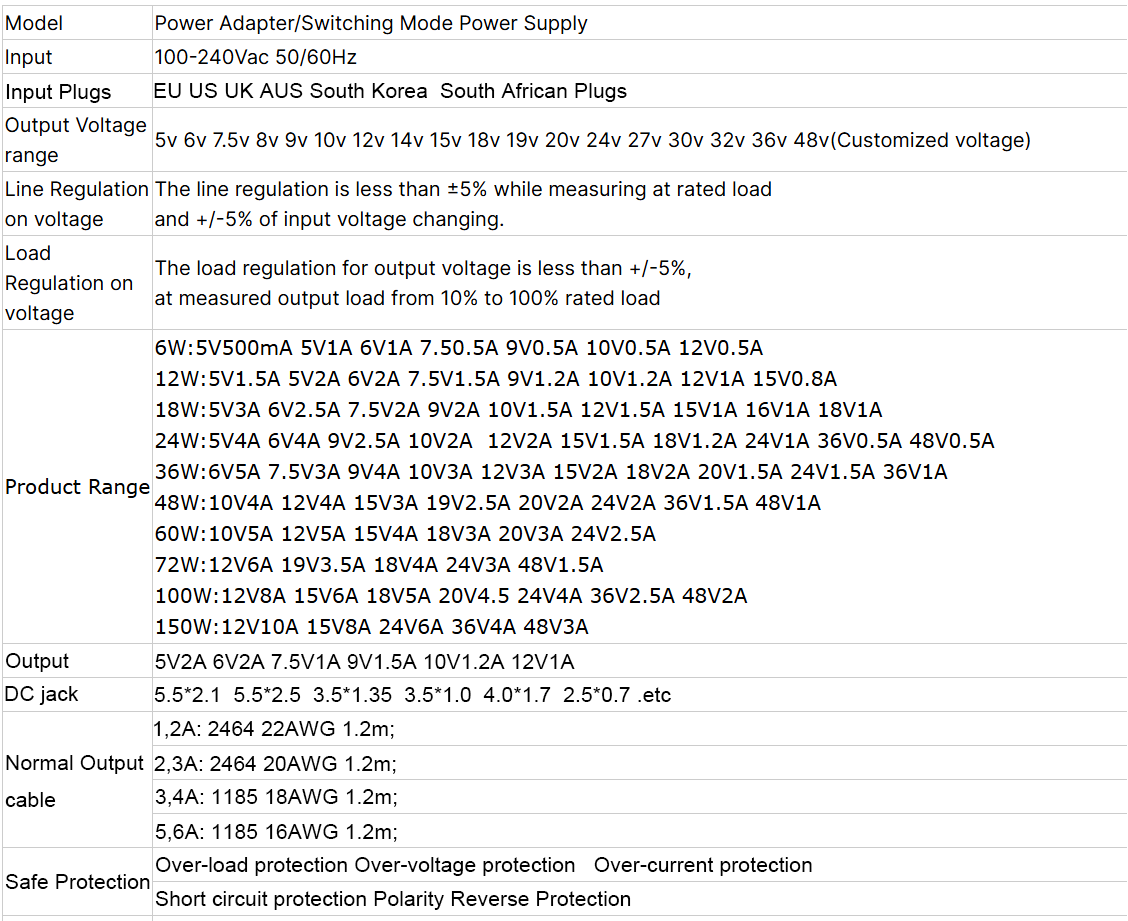 Q1. What are your main products? Power Supply: 0-150W with 3V 4.5V 5V 6V 7V 9V 10V 12V 15V 18V 19V 20V 24V 25V 30V 36V 48V 60V Outputs