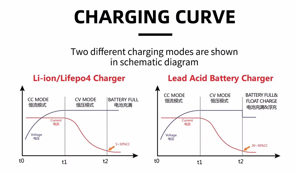 Q6. What is the charging mode for your battery chargers? CC--CV mode for Lithium ion/Lifepo4 Battery charger CC--CV--Float mode for lead acid battery