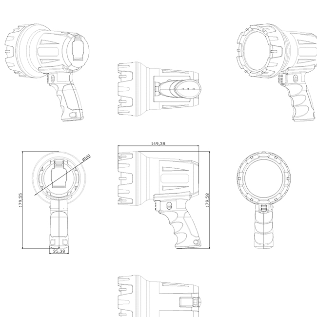 Comfortable handle for your gripping the handheld spotlight.