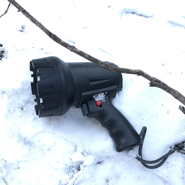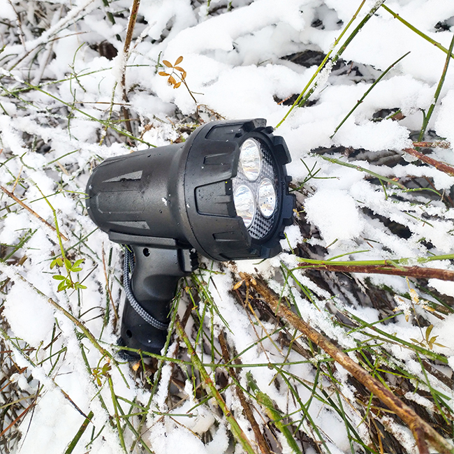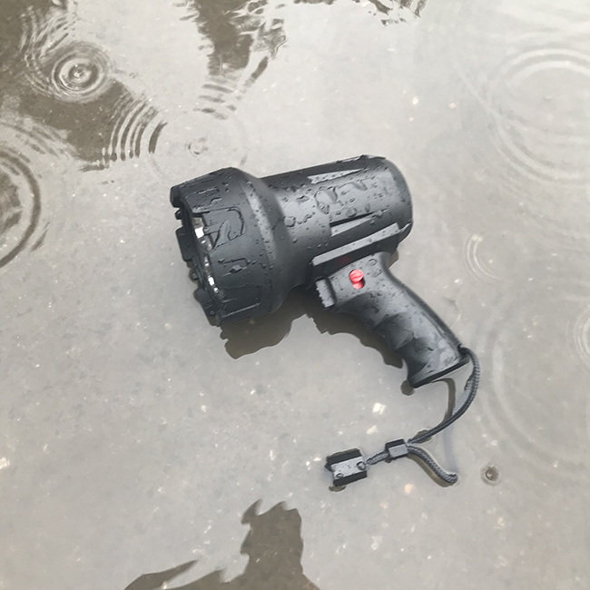 The portable spotlight has a very far beam distance of 600 meters.