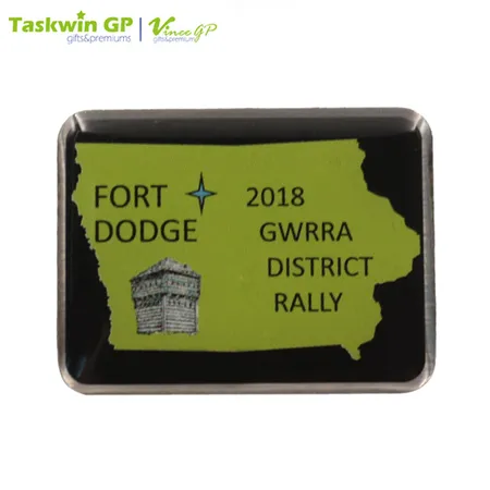 Promote your brand and products with this stainless-steel lapel pin. It comes in a rectangular shape and is printed with attractive artwork. This stainless-steel lapel pin is coated with epoxy for added durability and has a butterfly clutch for attachment.