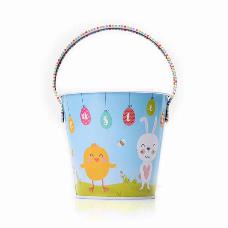 Small kids Easter promotional candy gift packaging bucket tinplate box with handle