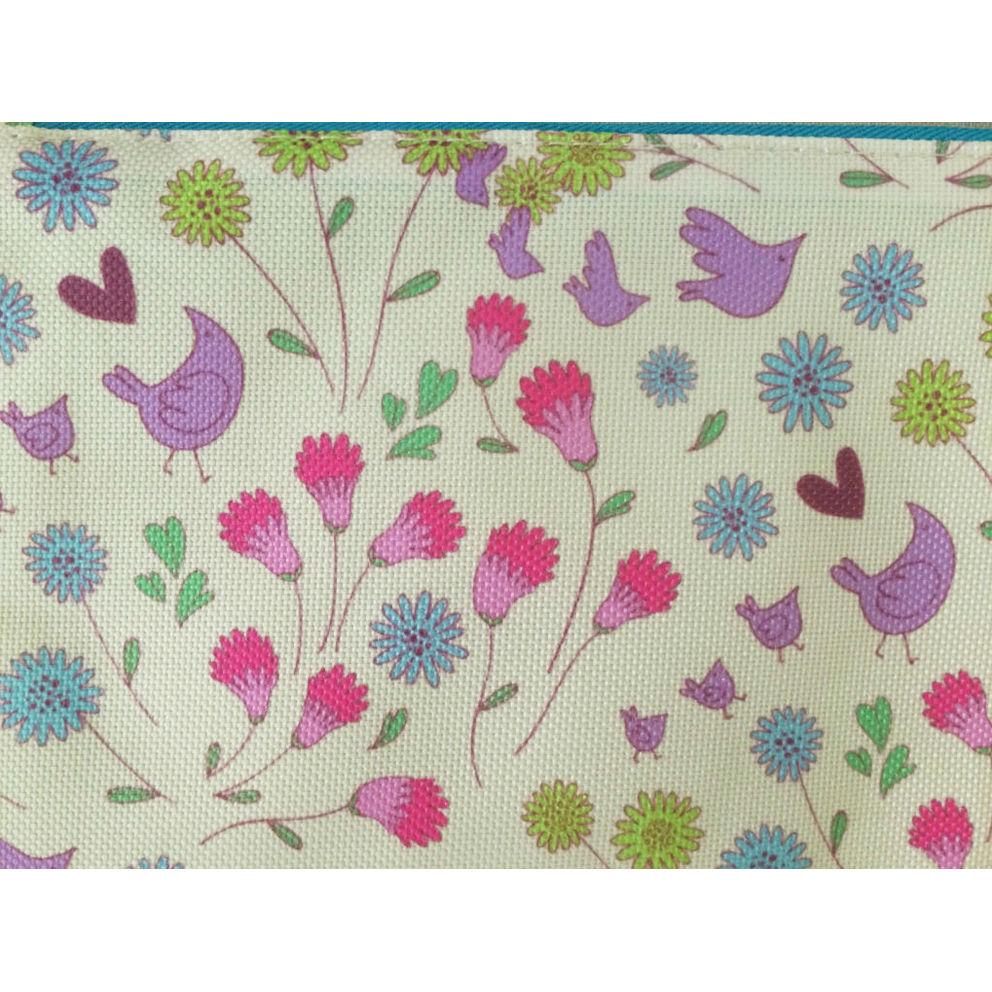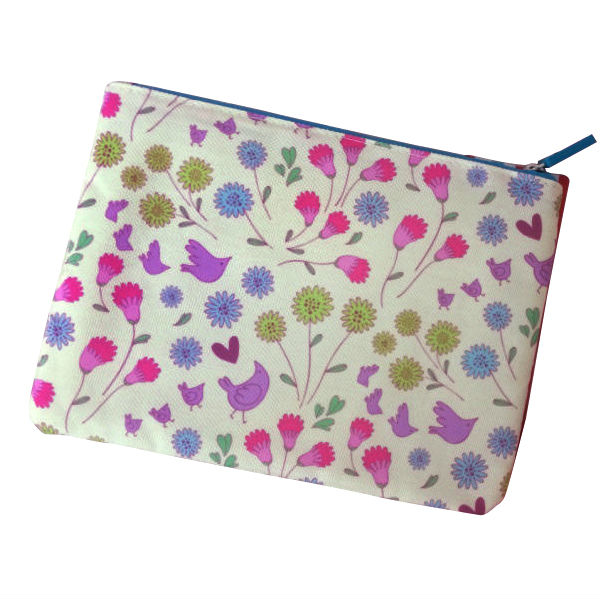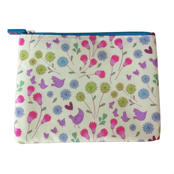 Promotional cosmetic bag displayed is made of canvas with silk printing logo