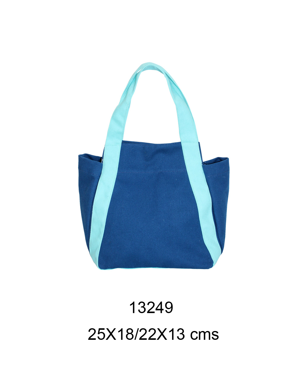 14 Ozs Blue Cotton with 10 ozs Sky Blue Cotton promotional bags with 35 CMS Self Handles.