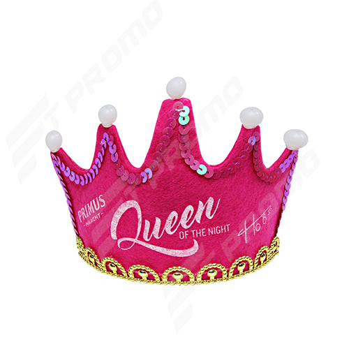 Non-woven and PP plastic material made, it is crown designed cap with golden decoration under.