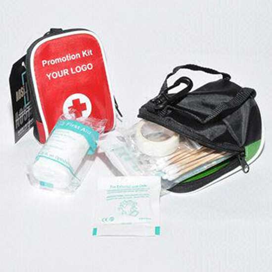 This all-in-one first-aid kit is perfect for household and outdoor use. The kit features well organized inner compartments for all first aid essentials. The promotional first-aid kit can be printed with customized logos.