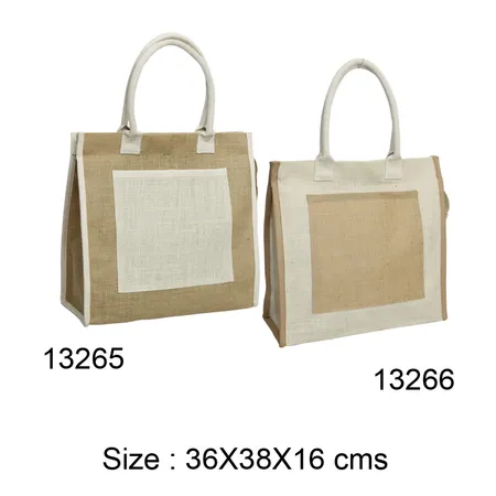 Natural Laminated Jute & Off white Laminated Jute with 45 CMS Rolled Tape handle