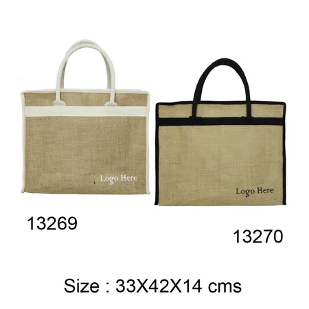 Natural Laminated Jute Promotional Bags with 50 CMS Rolled tape Handles ( Natural And Black)