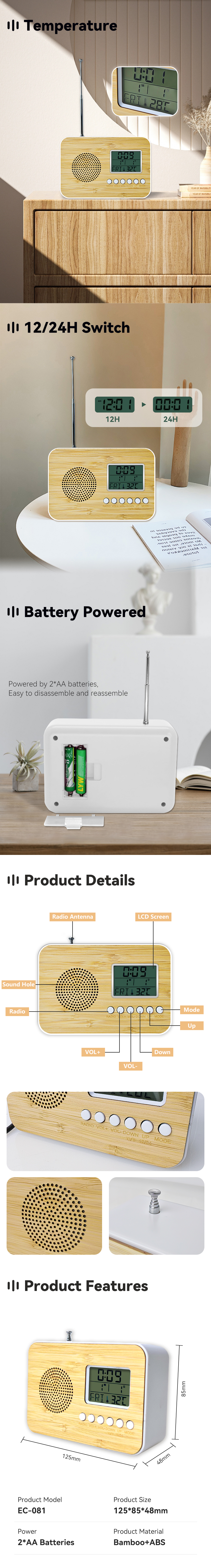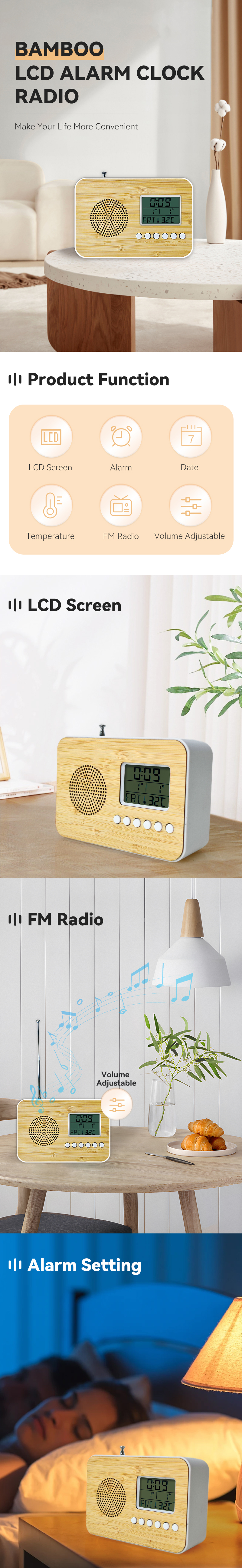 Promotional Shop Decoration Bedside Radio Portable FM Radios Alarm Clocks Home Digital Table Clock with Radio for Outdoor